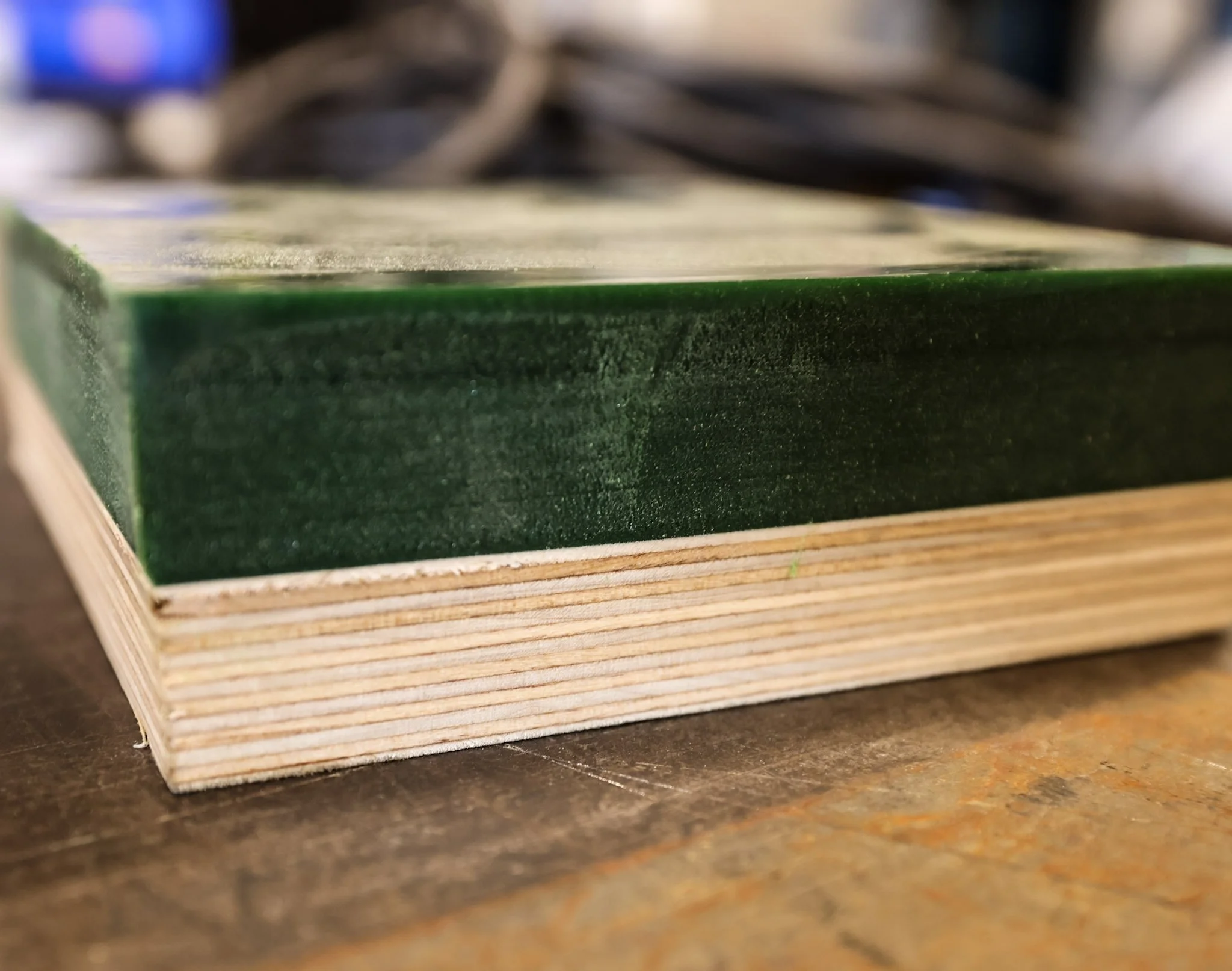 Urethane cast directly to the plywood base to prevent delamination